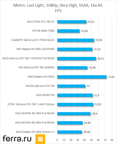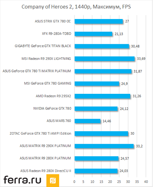И пусть GeForce GTX 780 можно назвать «старой» видеокартой, но она отлично справляется с современными играми. В Full HD и WQHD. Лишь в Company of Heroes 2 и Metro: Last Light ASUS STRIX GeForce GTX 780 OC Edition не смогла перешагнуть ступеньку в 30 комфортных и средних FPS.