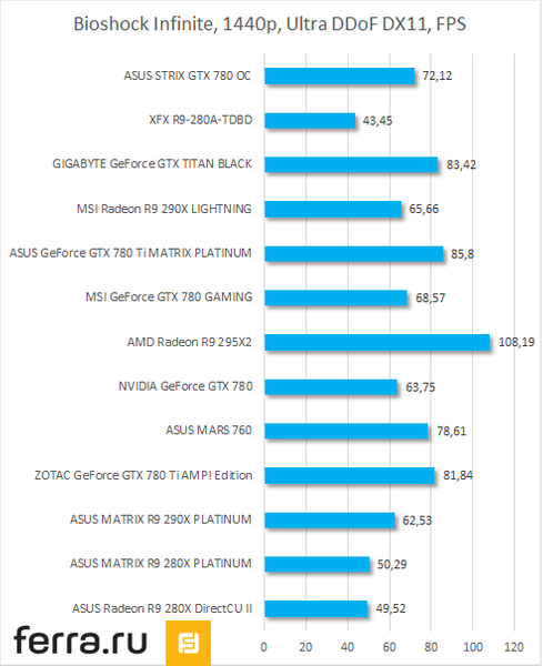 Что же до общего уровня производительности, то здесь ASUS STRIX GeForce GTX 780 OC Edition нас ничем удивить не смогла. Уровень быстродействия графического процессора GK110 уже достаточно давно известен. Однако этой самой производительности вполне хватает, чтобы комфортно играть на максимальных настройках качества в Full HD и WQHD-разрешении.