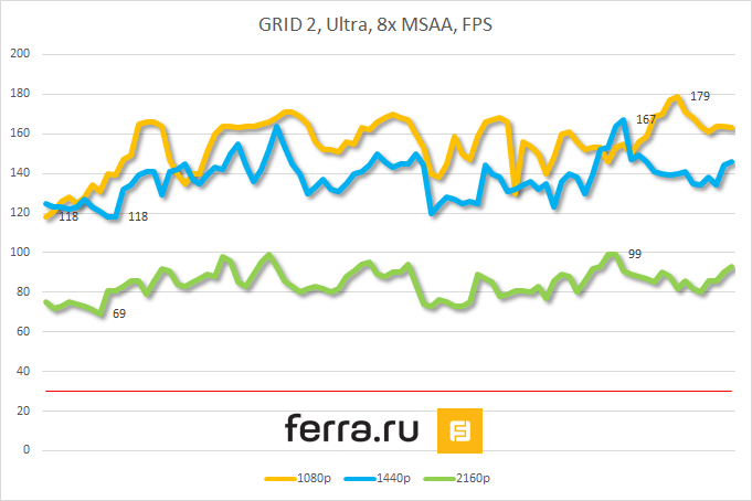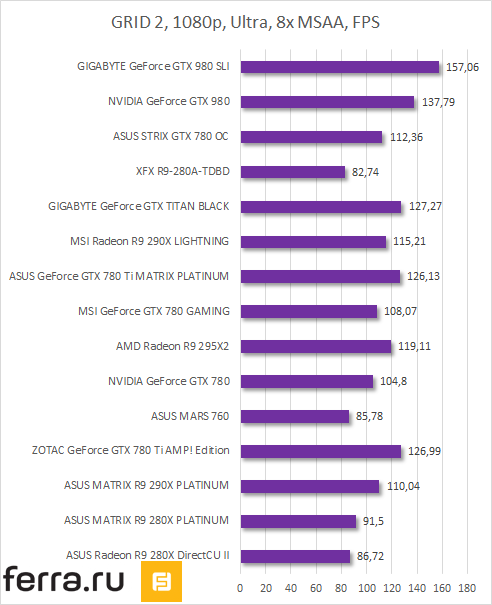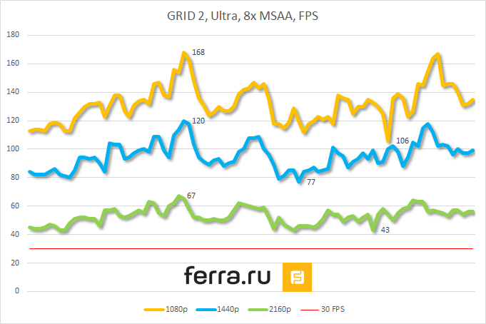 Я уже говорил про процессорозависимость. Вот в этих скудных 14 процентах она и проявляется. Далее GRID 2 демонстрирует более привлекательные результаты.