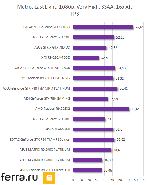 - гейминг в Full HD — отлично. В принципе, для Full HD вообще не требуется вторая видеокарта уровня GeForce GTX 980;