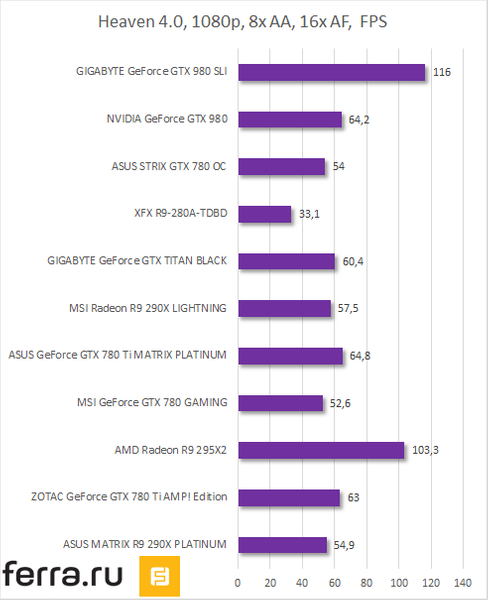 А вот бенчмарк Heaven, наоборот, демонстрирует очень хороший рост FPS.