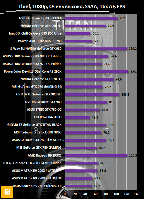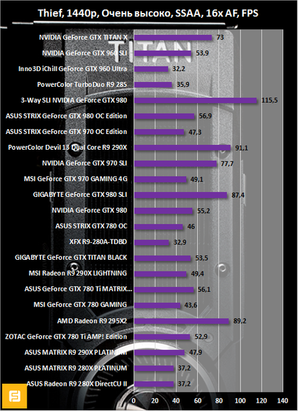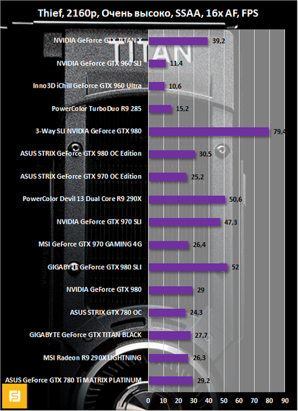 В таких играх, как Thief и Tomb Raider, в 4K тоже относительно все хорошо. По крайне мере, в сравнении с другими одночиповыми видеокартами.