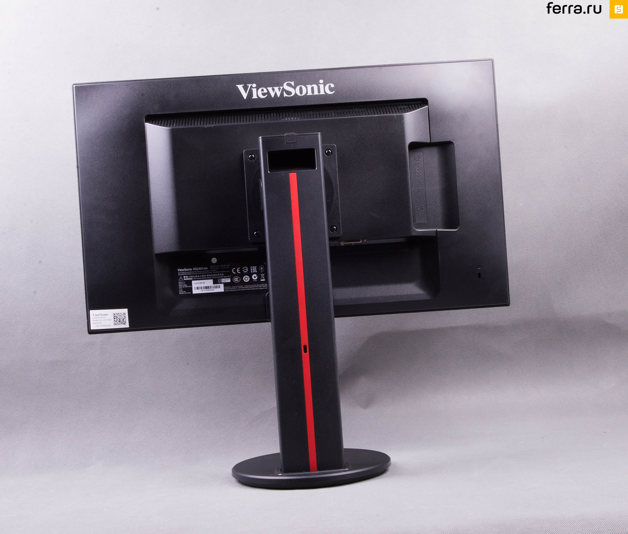 В боевое состояние монитор приводится очень быстро — достаточно прикрутить ножку подставки к самой подставке, причём делается это легко и без отвёртки. Внешность ViewSonic VG2401mh-2 производит приятное впечатление: не пытается привлечь внимание за счёт глянцевых деталей (весь корпус и подставка матовые), а строгий чёрный цвет оттеняется вертикальной красной линией с передней и с задней стороны подставки. Не оригинально, зато не слишком броско.