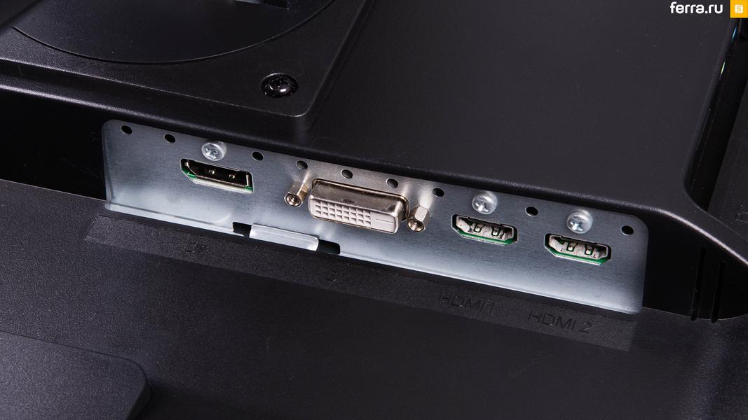 Порты у ViewSonic VG2401mh-2 разделены на две группы и расположены в разных местах. Одна группа — видеоинтерфейсы. Среди них DVI-D, два HDMI и DisplayPort. Они расположены практически за ножкой монитора и традиционно смотрят вниз. Не так далеко находятся два аудиопорта (3,5 мм джек) и три USB 3.0, хотя вставить флешку одной рукой, да еще на ощупь, будет очень непросто. На задней панели за решётками для вентиляции также спрятаны два динамика мощностью по 3 Вт, однако их звучание оставляет желать лучшего. То есть, если уж совсем ничего под рукой нет, тогда можно немного потерпеть то, как старается воспроизвести звук ViewSonic VG2401mh-2. Правда, само собой, никто потрясающего звука от мониторов не ждёт.