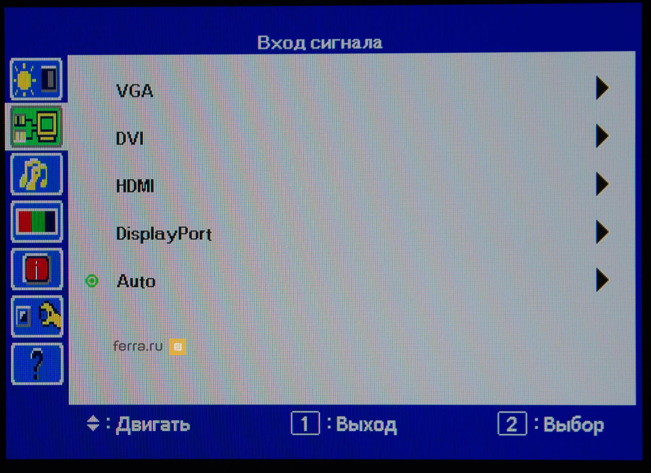 Правая кнопка вызывает быстрое меню, через которое вы можете выбрать определённый источник сигнала либо включить автоматический режим, переложив ответственность на монитор.