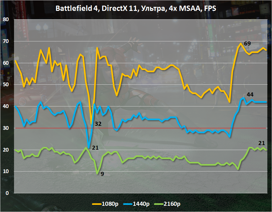 Battlefield 4 по сегодняшним меркам тяжело назвать ресурсоемкой игрой. Даже в Ultra HD при снижении качества графики и отказа от таких эффектов, как сглаживание, реально получить условно комфортные 30 FPS.