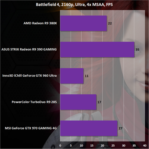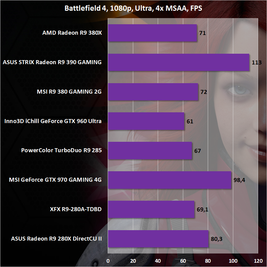 Battlefield 4 — еще один пример, когда Radeon R9 280X оказывается быстрее Radeon R9 380X. Как показывает практика, в этой игре даже Radeon HD 7970 умудряется опередить новинку. Видимо, движок Frostbite любит шину «потолще».