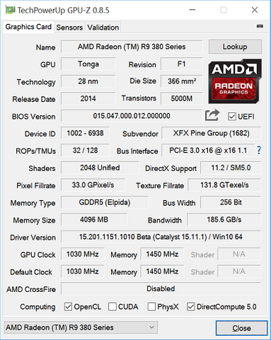 Расстрою тех, кто ожидал что-то прорывное от Radeon R9 380X. А именно продукт, схожий по производительности с Radeon R9 390, но с ценником от Radeon R9 380. Уже по характеристикам ясно, каким уровнем быстродействия обладает новинка.