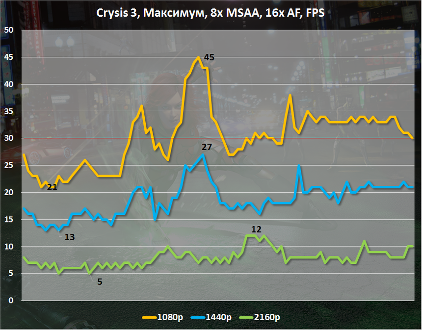 Первому Crysis совсем недавно исполнилось 8 лет! Третья часть франшизы тоже покрыта сединой, но игра по-прежнему относится к разряду одних из самых требовательных. Вот и Radeon R9 380X при заданных нами настройках качества графики выдает комфортное количество кадров в секунду только в разрешении Full HD.