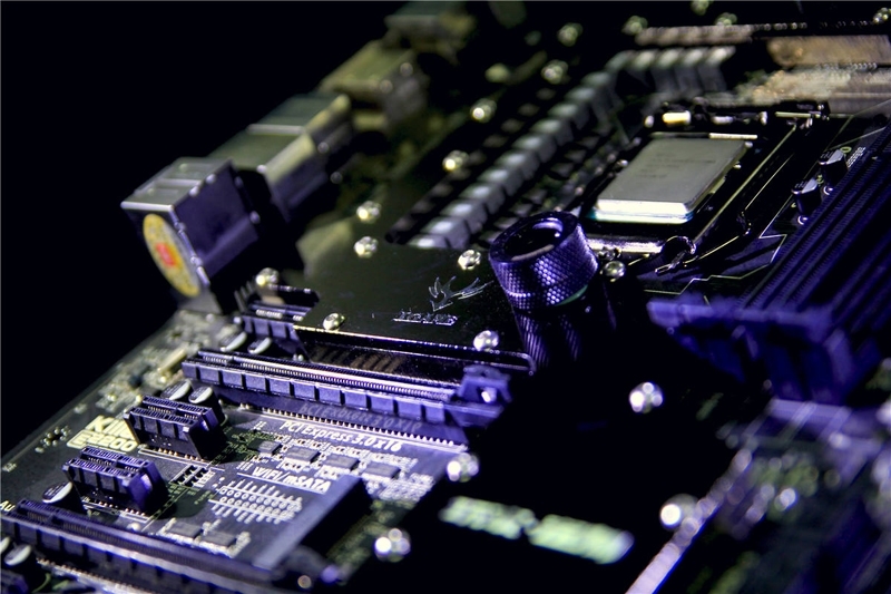 Чем может похвастать iGame Z97? Например, 16-фазной подсистемой питания центрального процессора. И возможностью подключить систему водяного охлаждения к встроенному радиатору. Материнская плата имеет три порта PCI Express x16. Судя по конструкции радиатора, в системе используется мост PLX. А это значит, что PEG могут работать по схеме x16+x8+x8.