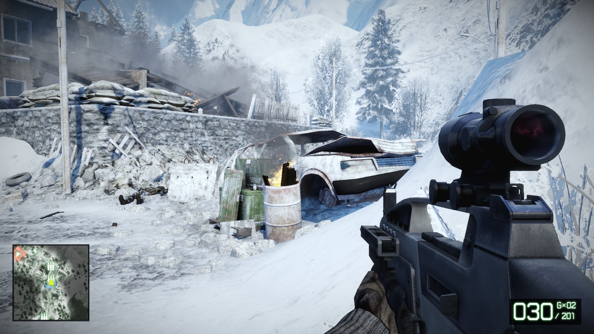 Собственно говоря, Battlefield: Bad Company 2 — это первый компьютерный релиз, построенный на движке Frostbite Engine. Уже версии 1.5. Вышла игра в 2010-м году. Интересно, что поддерживались сразу три API: DirectX 9, 10 и 11. В то время у многих продолжало «бомбить» от графики и ресурсоемкости Crysis, но «Плохая компания 2» тоже не ударила в грязь лицом. На мой взгляд, появление шедевров на DirectX 10/11 как раз и ознаменовало переход визуальной составляющей на ступеньку выше. Battlefield: Bad Company 2, Crysis, Crysis 2 — это и есть всадники некстгена. Сегодняшние игры, конечно, прибавляют в качестве изображения, но вот серьезного и заметного скачка не наблюдается. Доказательством моих слов послужат скриншоты. Сравните Battlefield: Bad Company 2 хоть с той же Battlefield 2. Подобной разнице в «графоне» поспособствовало и долгое использование DirectX 9, который, как мы знаем, просуществовал в виде ревизий «a», «b» и «c».