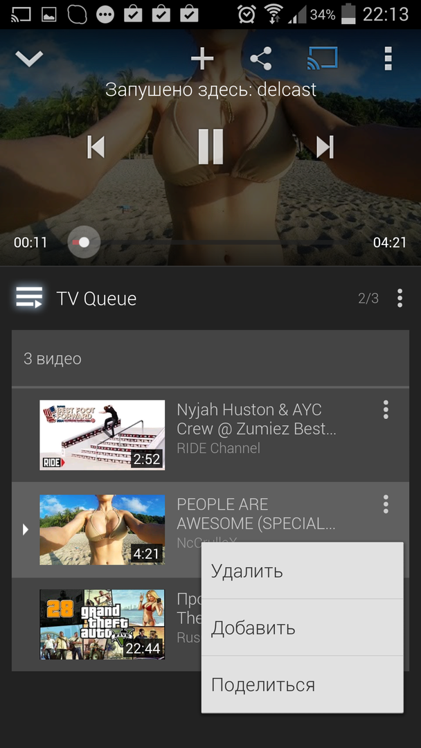 Режим воспроизведения видео со стримингом на ТВ через AllCast