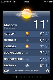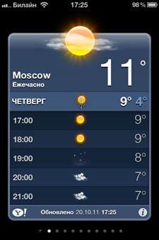 Приложение погоды (помимо виджета в области уведомлений) теперь может давать прогноз по часам. Для этого достаточно нажать на нужный день в списке и увидеть подробный прогноз. Это будет особенно актуально для жителей городов с часто меняющейся погодой. Для Москвы - это просто приятная мелочь.