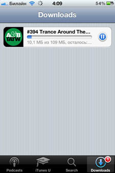 Здесь же стоит затронуть и тему локализации. Например, экран блокировки почему-то называют «закрытым экраном». Это сбивает с толку. И это не единственное нарекание. Оформление страницы загрузок в подкастах подверглось легкому редизайну, в результате при использовании русского языка строка текста становится слишком длинной и индикатор времени до конца загрузки не виден. На скриншоте видно, что я имею в виду.