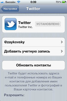 Twitter-клиент теперь интегрирован в iOS. Учетные записи настраиваются из меню настроек, а в контекстных меню появился пункт Tweet it! Стало однозначно удобнее. Для отображения ленты используется официальный клиент Twitter, однако любители альтернативных приложений не должны чувствовать себя ущемленными – возможность установки Twitter-приложений из App Store никто не отменял.