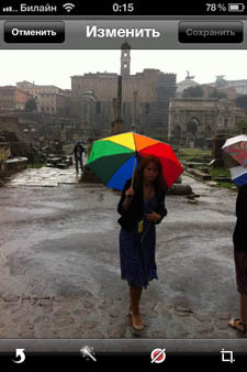 Во вьювере фотографий появились базовые функции редактирования. Теперь можно вырезать произвольную часть изображения (привычный инструмент Crop здесь зачем-то называется «Усечь»), использовать функцию автоулучшения, менять соотношение сторон и устранять эффект красных глаз. Из всего этого по-настоящему полезной можно назвать только функцию Crop.