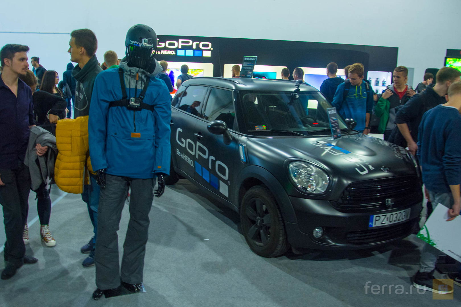 Также мы нашли нескольких производителей корпусов и компьютерной периферии. Не обошлась выставка и без популярных камер GoPro. Их, к слову, показывали вместе с новыми полупрофессиональными квадрокоптерами DJI. Модель INSPIRE, которая представлена на фото, стоит всего лишь около 250 000 рублей.