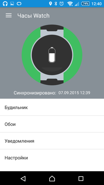 Меню часов Alcatel One Touch Watch