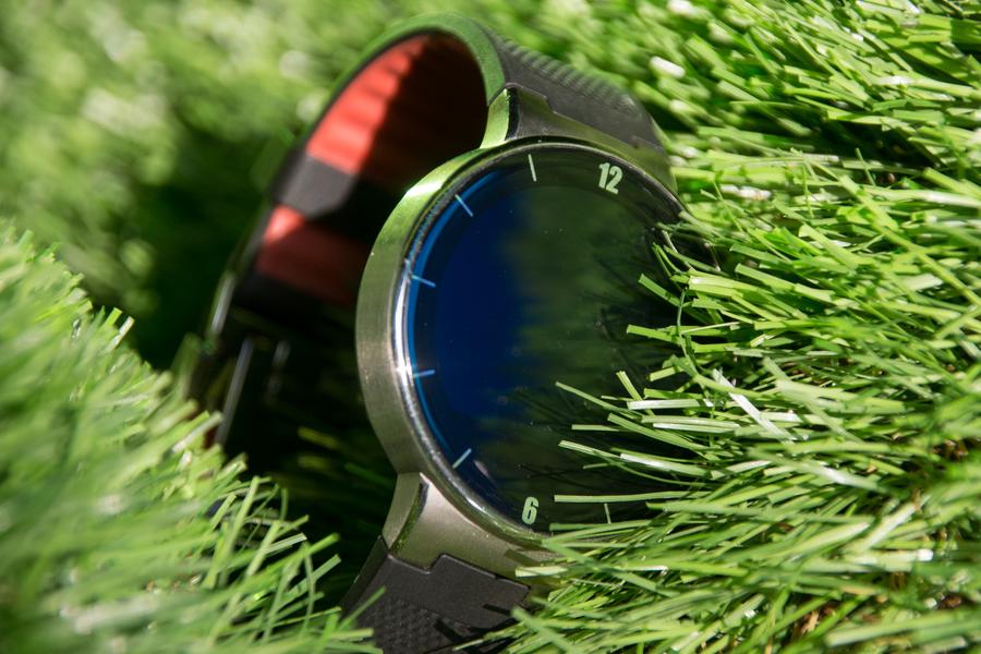Ремешок часов сделан из силикона двух цветов. Снаружи ремень чёрный и имеет сетчатое тиснение, а с внутренней стороны — красный с ребристыми насечками для лучшего крепления застёжки. К сожалению, ремешок невозможно снять с часов, потому, что в одной из его половинок спрятан штекер USB для зарядки устройства. Идея интегрировать USB-разъём в носимую электронику не нова. Мы помним один из первых фитнес-браслетов Nike FuelBand, в котором был точно такой же штекер. Однако умные часы — это всё же часы, то есть аксессуар, который должен выглядеть так, как хочет владелец. Зато не требуется таскать с собой провод или док-станцию, чтобы зарядить гаджет среди дня.