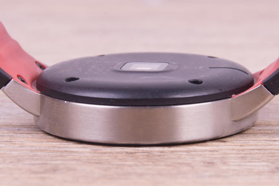 На тыльной стороне, прямо посередине разместился датчик сердечного ритма. Он здесь оптический, то есть такой же, как в Moto 360 или LG Watch Urbane. Такие модули не отличаются высокой точностью, но для умных часов и этого хватит. А вот если вы занимаетесь спортом профессионально и вам важно достоверно знать свой пульс, то стоит присмотреться к другим решениям, умные часы для этого не подойдут.