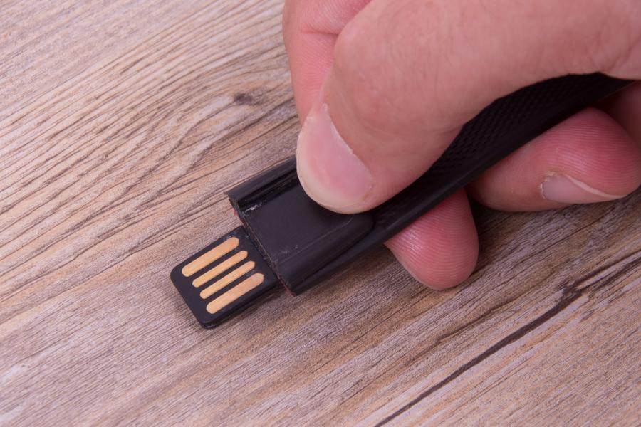 Застёжка тут самая обычная, притом не слишком надёжная. Если не заправить конец ремешка в незакреплённую шлёвку, то часы запросто могут слететь. В то же время, каждый раз при загибании ремешка происходит давление на USB-штекер, и создаётся ощущение, что он вот-вот сломается. Поэтому нужно выбрать, к чему вы больше готовы: к тому, что часы потеряются, или к тому, что штекер оторвётся.