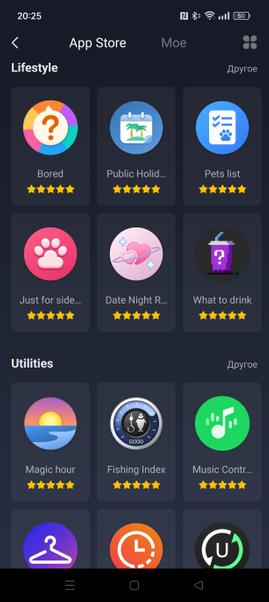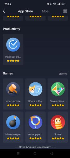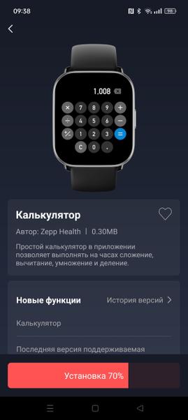 В-третьих, в приложении Zepp на часы можно поставить разные приложения, среди которых даже есть простые игры. Библиотека небольшая, но всё-таки это позволяет кастомизировать Amazfit Active под ваши нужды. Например, имеется калькулятор, счётчик воды (сколько вы пьёте), запись температуры тела, пара-тройка незамысловатых игр.