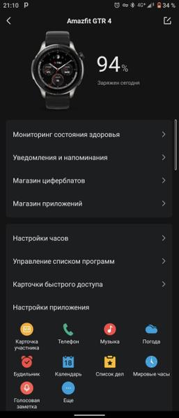 И, видимо, такое время работы можно объяснить тем, что сама Zepp OS умеет работать с энергопотреблением лучше, чем это делает Wear OS. Те же Galaxy Watch4, хоть и с чуть меньшей емкость аккумулятора, работают всего пару дней. Результат все еще лучше, чем у Apple Watch, но до GTR 4 не дотягивает.