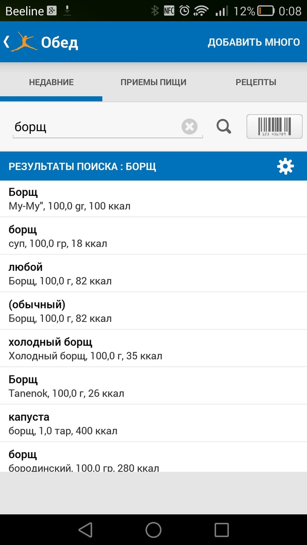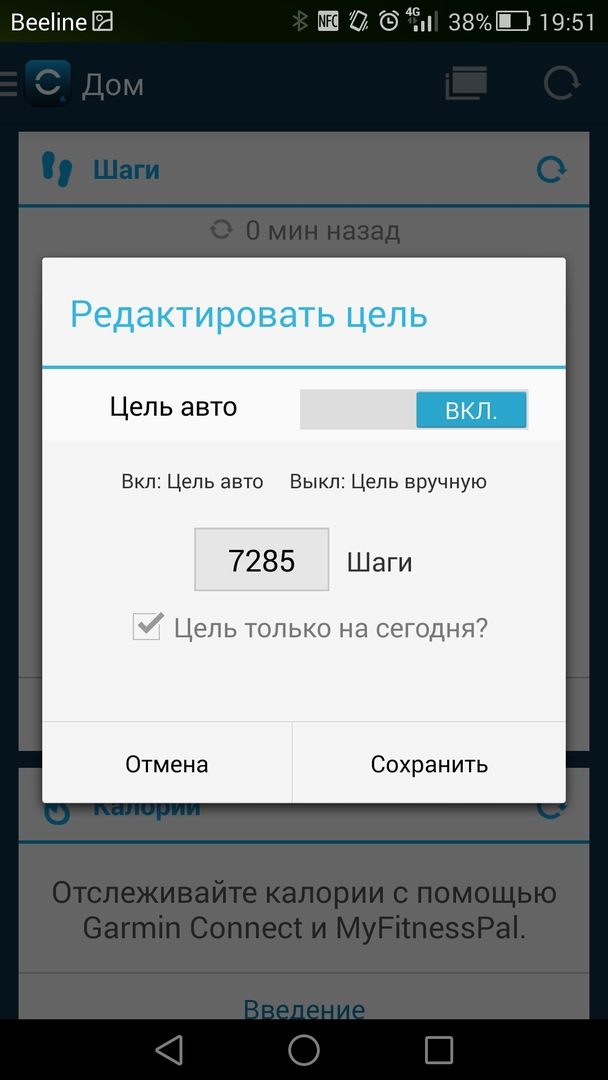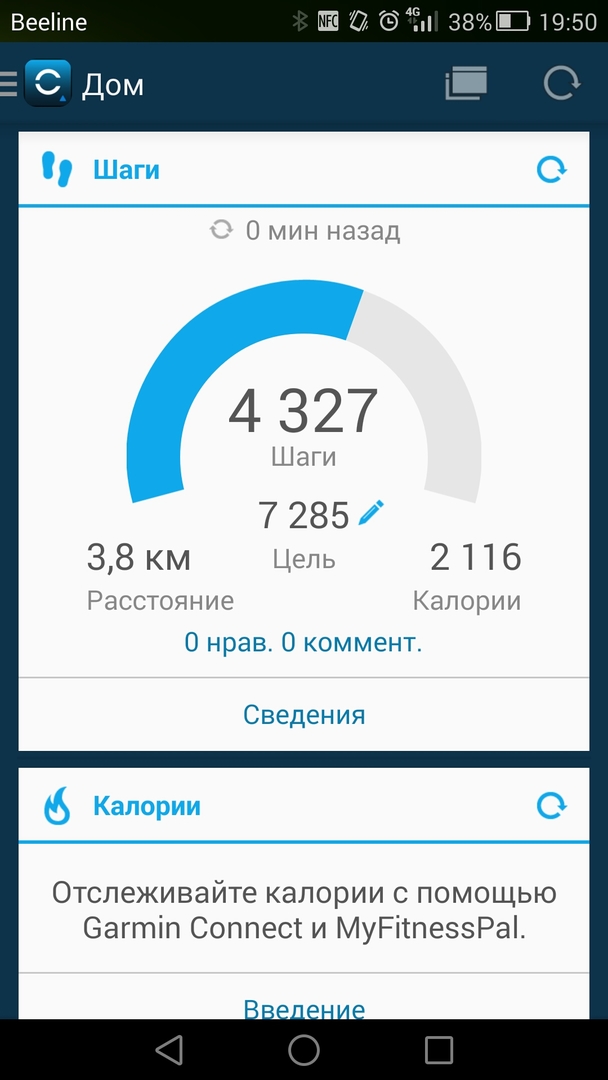 Чтобы не только считать сожженные вам калории, но и давать представление об энергетическом балансе, Garmin подружилась с сервисом MyFitnessPal. В его приложении довольно удобно вести учёт еды и её пищевой и энергетической ценности. В программе можно отсканировать штрих-код на упаковке чего-нибудь съестного, и она сама распознает продукт и узнает его калорийность. Можно и вручную искать по базе продуктов, включающей и абстрактные блюда типа «Борщ». А Garmin Connect сможет показывать не только, сколько энергии вы уже потратили, но и сколько сжечь еще предстоит.