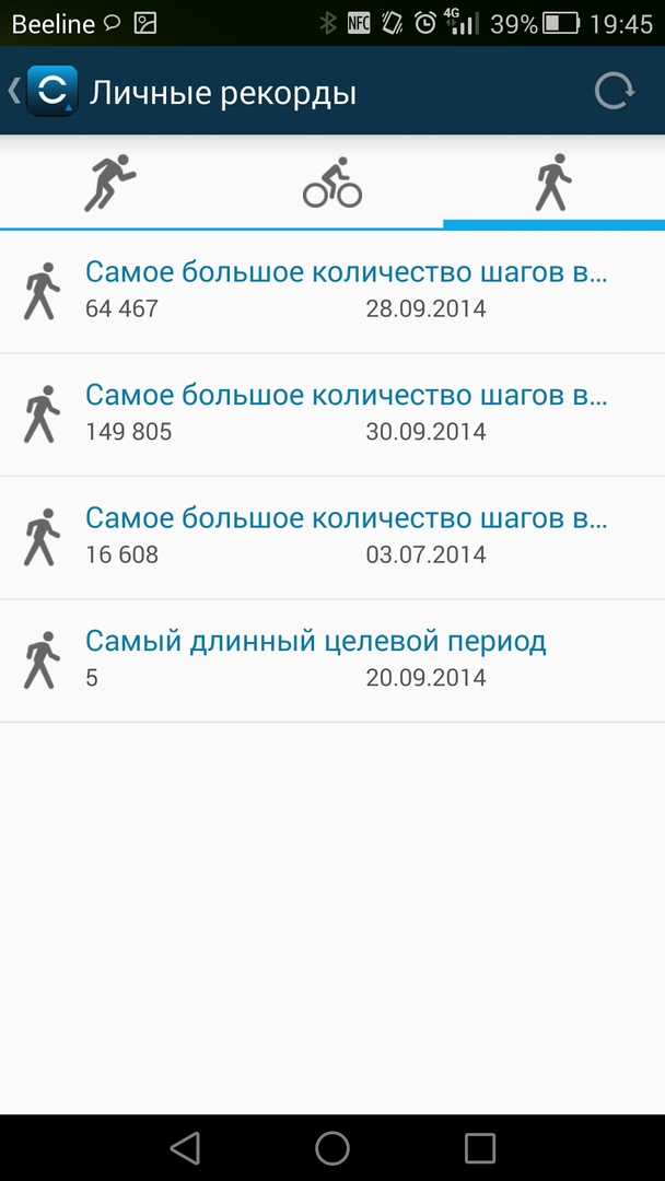 Десктопное приложение Garmin не умеет ничего, кроме как высасывать историю ходьбы из браслета и отправлять её на сервера Garmin, предлагая смотреть статистику на веб-сайте. А вот со смартфонами vívofit прекрасно дружит по Bluetooth. Для них имеется программа с тем же названием Garmin Connect , которая не только работает перевалочным пунктом для данных с браслета, но и сама показывает статистику пройденных шагов, сожженный калорий, сна и проведённых тренировок. Если у вас из снаряжения Garmin есть только сам vívofit, то занятия придётся вводить вручную. Автоматически беговыми тренировками будут считаться промежутки времени, когда был подключен пульсометр. Чтобы синхронизировать браслет, нужно на пару секунд зажать единственную кнопку и тем самым перевести его в режим SYNC. К счастью, не обязательно запускать мобильное приложение, оно работает в фоне и всё равно получит данные. В общем, вся повинность сводится к тому, чтобы раз в неделю нажимать кнопку.