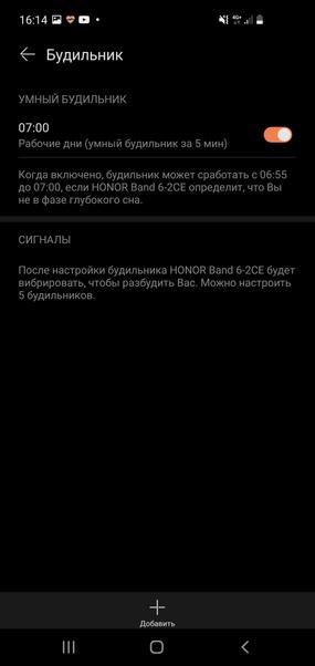Автономность Как и многие современные фитнес-браслеты, Honor Band 6 рассчитан на 14 дней работы, но это при условии, что отключён постоянный автоматический мониторинг пульса, сна, тренировок и т.п. — короче, всё самое интересное, ради чего вообще люди и покупают “умные” гаджеты. Со всеми включёнными функциями получится около недели, если вообще не снимать, но и тут всё индивидуально — в зависимости от уровня яркости, и чем вы будете пользоваться всё это время.