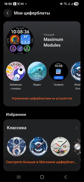 Часы работают в паре со смартфоном, к которому подключаются с помощью приложения HUAWEI Health. Там можно управлять всеми настройками, качать циферблаты из цифрового магазина HUAWEI (да, циферблаты бывают и платные, и да, в России их купить возможно), просматривать подобную информацию с «медицинских» датчиков.