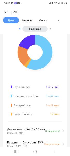 Да и вообще, все заявленные функции часы выполняют отлично. Измерение шагов довольно точное, отслеживание фаз сна... Ну, скажем так, очень похоже на правду по ощущениям с утра. Жаль только, что купаться не разрешают.