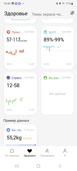Ещё хуже — с погодой. Виджет погоды и приложение погоды показывают одно и то же, но в приложении можно ещё пролистнуть вниз и увидеть подробности. А вот приложение и виджет измерения пульса идентичны. При этом, например для управления музыкой предусмотрен только виджет, а для измерения уровня кислорода в крови — только приложение. И вот мой мозг просто отказывается понимать, почему пульс я могу измерить и там, и там, а насыщение крови кислородом — только в одном месте, и я должен ещё запомнить — в каком именно.