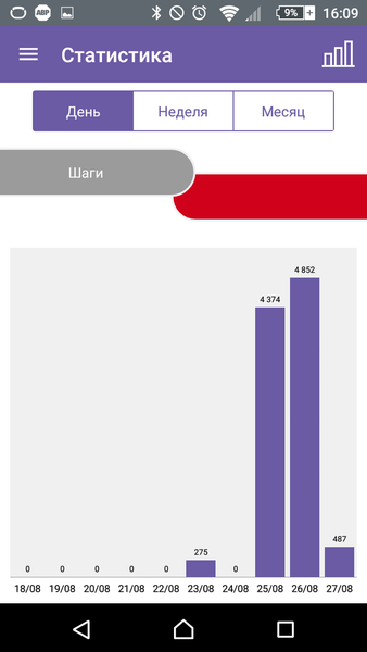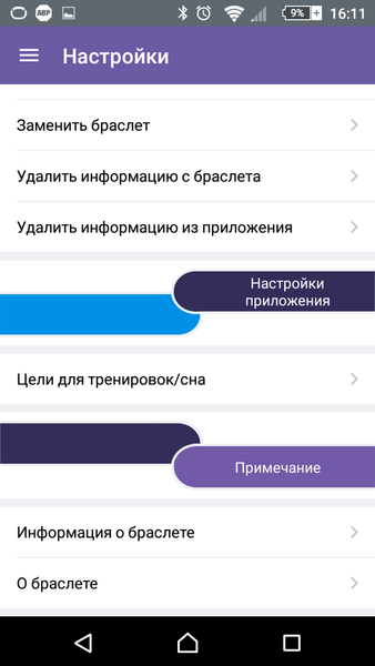 В отличие от других трекеров, тут приложение не связано постоянно с браслетом. Соединение Bluetooth используется по требованию, когда нужно записать какие-то настройки в гаджет или скачать с него статистику. Неплохая задумка, ведь это позволяет не разряжать лишний раз аккумулятор. Конечно, не слишком удобно каждый раз нажимать кнопку синхронизации, но за длительное время работы приходится чем-то платить.
