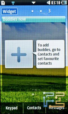 Разумеется, на главном экране могут быть помещены виджеты — это решение типично для абсолютного большинства современных тачфонов. Для удобства, главный экран разделен на несколько страниц, прокручиваемых в горизонтальной плоскости. Такое оформление знакомо достаточно давно по другим моделям Samsung. Изначальный набор виджетов не очень велик, но благодаря онлайн-магазину приложений Samsung Apps их коллекцию можно без особых затруднений расширить. Окошко выбора виджетов переместилось из левой части дисплея в нижнюю, так же как и в актуальных тачфонах LG.
