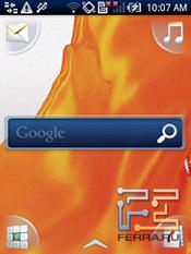 Привычный интерфейс Android здесь отсутствует, вместо него — собственная разработка Sony Ericsson, название которой почему-то нигде не фигурирует. Здесь мы имеем три страницы, на которые можно ставить виджеты (и нельзя ставить ярлыки). Главная страница рабочего стола отображает часы и четыре пиктограммы для быстрого доступа к основным функциям. Под основными функциями в данном случае подразумевается адресная книга, сообщения, звонилка и музыка. Главное меню "выезжает" снизу и листается не вертикально, как заведено, а горизонтально. Изначально это четыре страницы с матрицей иконок 3х3, но, по мере установки дополнительного софта, "длина" главного меню растет.
