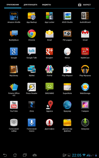 В Россию Padfone 2 поступил с уже установленной Android 4.1.1 Jelly Bean. Никаких значительных изменений ASUS в оболочку не внес, лишь слегка видоизменил интерфейс и добавил собственных виджетов. В основном меню тоже всё стандартно: матрица иконок приложений, разделённая на страниц, виджеты и отдельно программы с исключительно планшетным интерфейсом (такие, надо заметить, большая редкость).
