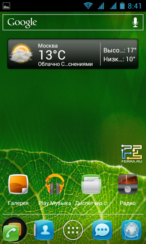 Аппарат работает на базе «голой» ОС Android версии 4.0.4, то есть никакой оболочки от Alcatel ему не досталось. По-моему, это совсем неплохо, ведь ICS сам по себе весьма интересен, и заваливать его сверху «свистелками» значило бы только понапрасну отнимать ресурсы железа. Однако производитель позаботился о пользователе, добавив в базовую поставку неплохой набор приложений, дабы из коробки смартфон был готов к работе.
