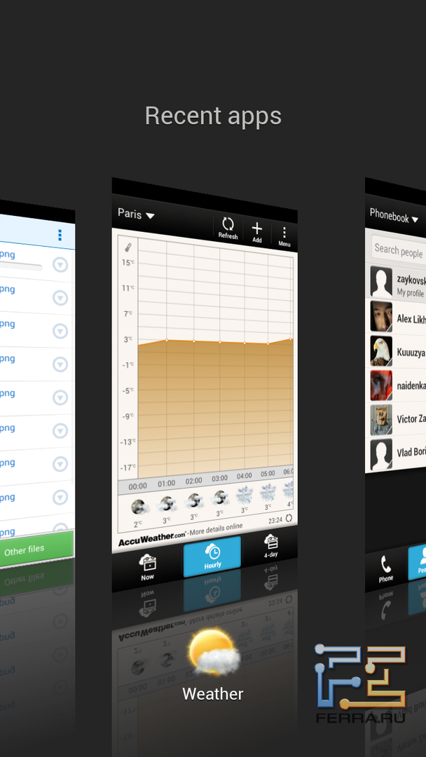 Смартфон, помимо прочего, получил обновленный пользовательский интерфейс HTC Sense 4+. Он принес вышеупомянутый режим энергосбережения, а также некоторые мелкие улучшения. В частности, рабочие столы теперь закольцованы, то есть, их можно прокручивать бесконечно. Это удобно. Подобной фичи очень недостает, например, в iOS.