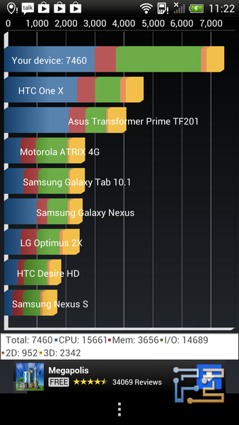 Единственный лаг, замеченный при тестировании, унаследован смартфоном от предшественника. Пользовательский интерфейс HTC Sense отбирает большую часть оперативной памяти, так что если запустить требовательную игру, а потом резко из нее выйти, то придется секунду-другую подождать, пока Sense снова загрузится в ОЗУ. К слову, игры на устройстве тоже летают: некоторые разработчики даже выпускают специальные версии для Tegra 3 и интегрированной графики ULP GeForce 2, чтобы продемонстрировать на этой платформе максимальные возможности своих творений.