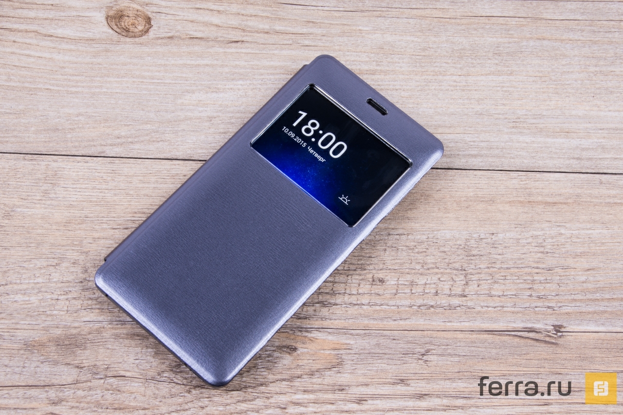 Комплектация у Power Five внушительная: зарядное устройство и гарнитура никого не удивят, но комплектный OTG-кабель для подключения флешек/мышек и чехол с магнитом встречаются далеко не в каждом смартфоне этого класса. Сквозь окошко в чехле отображается время и ярлык быстрого запуска вспышки-фонарика. А вот настраиваемого меню, как в ASUS ZenFone 2, мы не обнаружили.