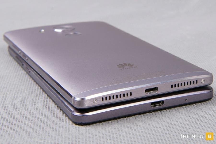 Huawei Mate 8 (сверху) и Mate 7 - левая грань
