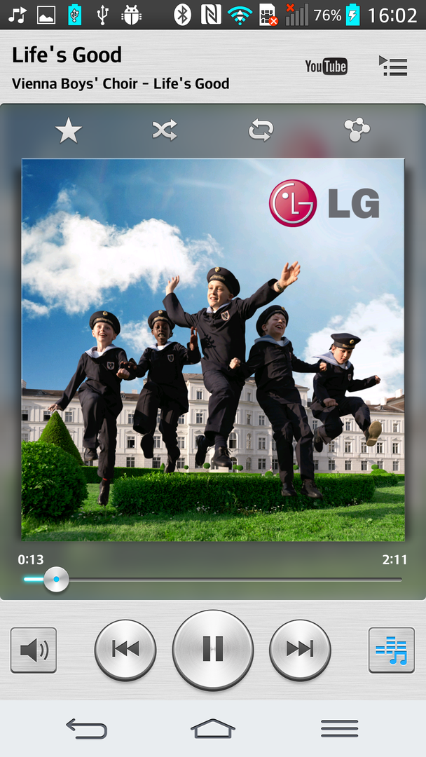 Звук в наушниках качественный, усредненный по частотам и неплохой по громкости. Пожалуй, флагманские Nokia Lumia перекричат G2 по громкости, но Android-флагман всегда в ответ отыграется точной регулировкой эквалайзера, нивелируя разницу. К тому же G2 поддерживает звук качества Hi-Fi — вы сможете вернуть себе давно подзабытые со времён Audio CD впечатления от звука.