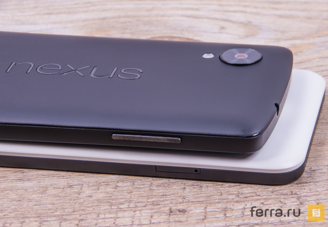 Буквы «Nexus» и логотип LG выполнены не «под хром», а скорее под серебристый «металлик», как в гелевых ручках. Если надпись окажется долговечной — почему бы и нет, ведь этому смартфону идёт отсутствие переливающихся и лоснящихся элементов корпуса.