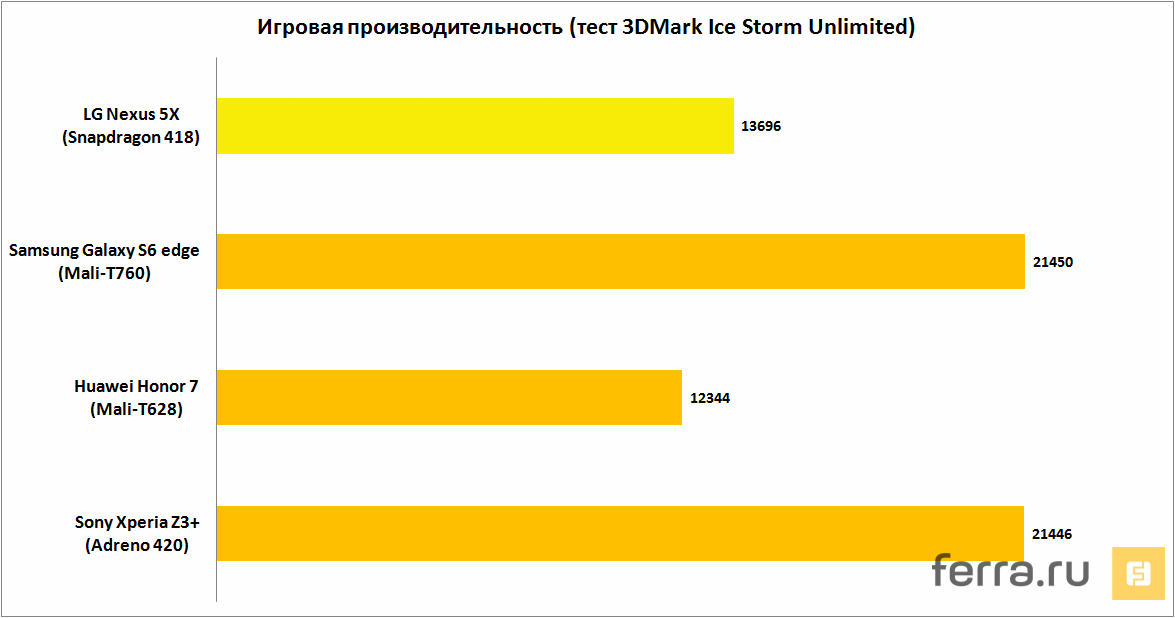 Сейчас мощность «бедного родственника» флагманских процессоров примерно равна актуальному для китайских смартфонов чипу MediaTek MT6795T или Kirin 930-935. То есть, до Snapdragon 810, работающего в полную силу (такие иногда встречаются) или Exynos 7420 из семейства Galaxy наш герой априори не «допрыгнет», но он всё ещё достаточно мощный, чтобы не считаться процессором среднего класса. Не будем также забывать, что усилиями программистов Google наш герой уж точно состарится не позже, чем HTC One M9 или Sony Xperia Z3+, и даже скупые 2 ГБ «оперативки» ему в этом не помешают.