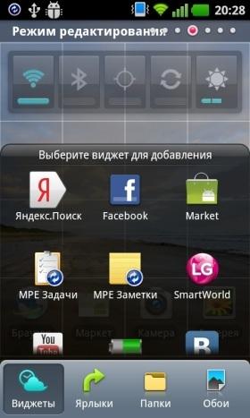 Как и в других андроидофонах от LG, в Optimus Sol используется фирменный интерфейс, который, с одной стороны, не старается быть принципиально непохожим на классическую оболочку ОС Android 2.3, а с другой — добавляет несколько вкусных фишек. Например, удобный режим размещения графических элементов на рабочих столах и дополнительные виджеты.