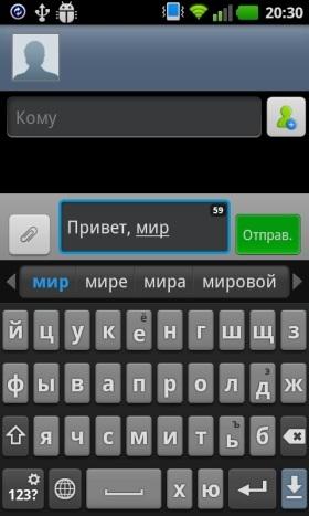 Экранная клавиатура в ландшафтном режиме на LG Optimus Sol
