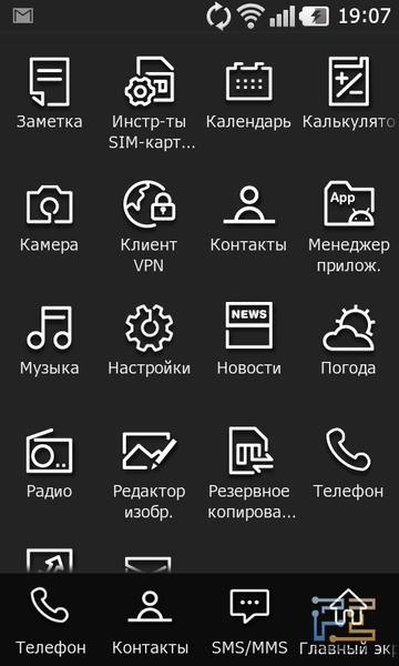 Везде, где возможно, использован чёрный фон. Наверное, по задумке он должен был сливаться с корпусом. Но экран не блещет контрастностью, и чёрный цвет на нём виден как тёмно-серый. Не дожали.