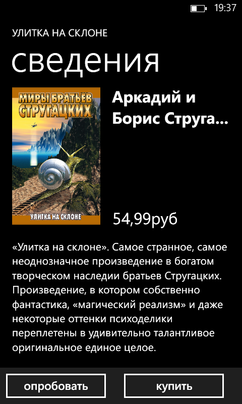 Книги Nokia — книжный магазин и программа для чтения на смартфона. Ассортимент хороший, цены — средние по рынку. Ничего дешевле 55 рублей я не нашёл, а самое дорогое из попавшихся на глаза изданий стоило 150 рублей. Само приложение для чтения, правда, предельно минималистичное, настроек почти нет.