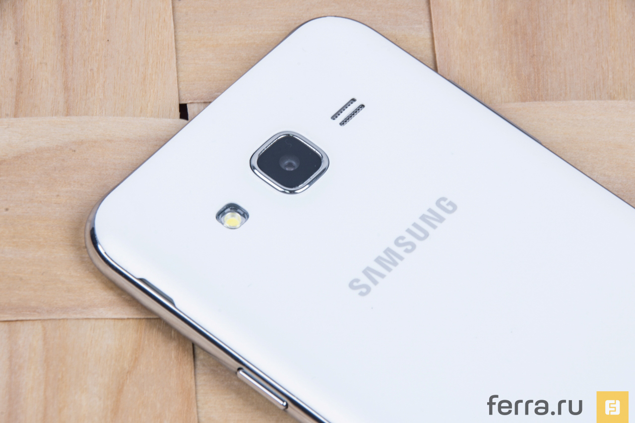 Незадолго до этого у нас на тесте побывал Samsung Galaxy E5, и чёрт подери — эти две модели похожи друг на друга как близнецы-братья, как внешне, так и технически. Только при дотошном рассмотрении обнаруживаются различия: корпус у Galaxy E5 неразборный, грани у «среднеклассового» Galaxy очерчены резче, а сам корпус при этом толще. Ну и главная отличительная черта J5-го — вспышка на фронтальной панели — тоже бросается в глаза.